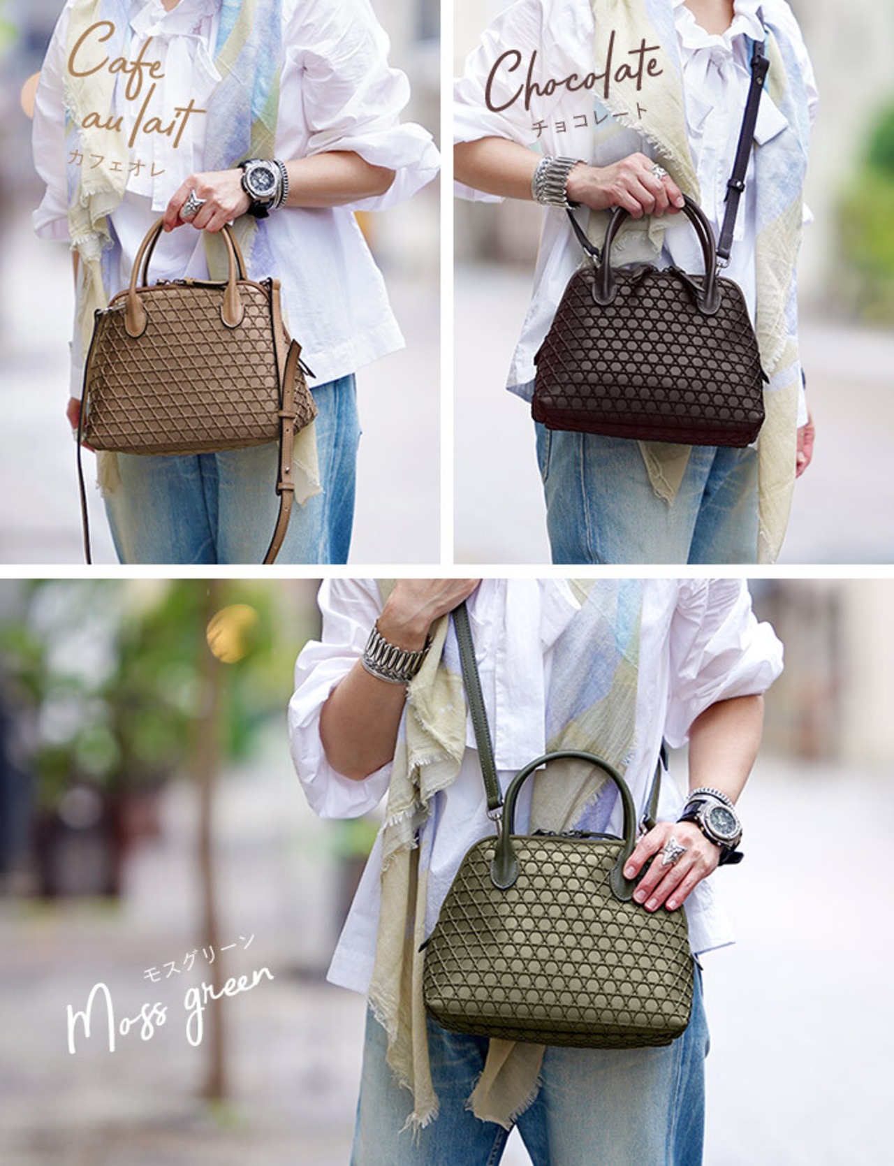 【撥水加工】籠目柄 エンボスボンディング 2WAY ミニボストン