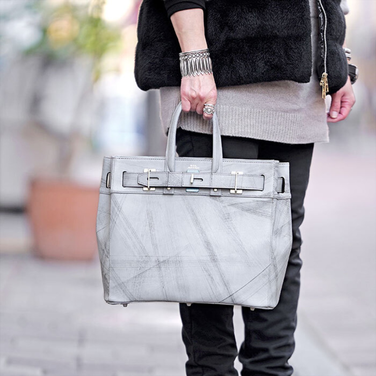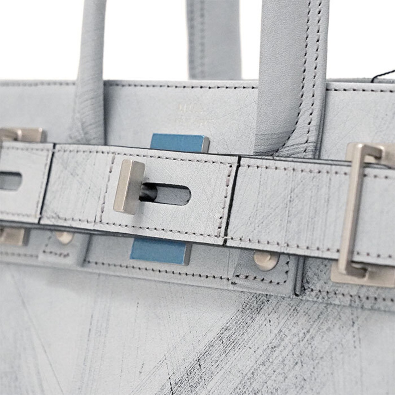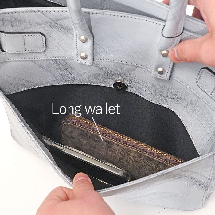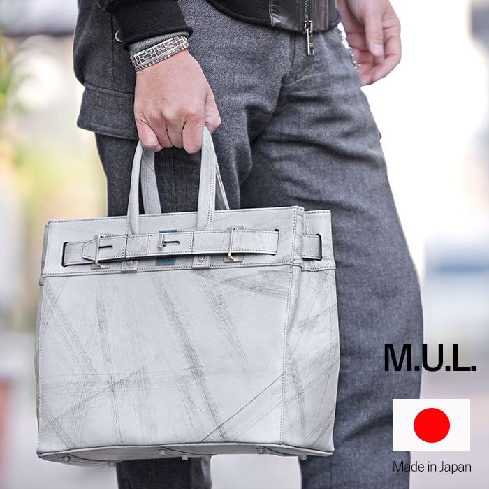 M.U.L MUL129 STUD TOTE M ダメージホワイトコーティング スクラッチ型押し