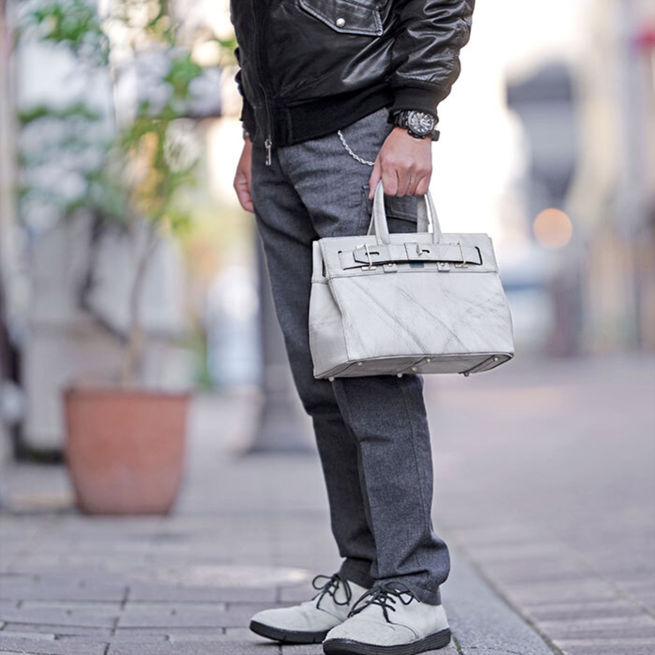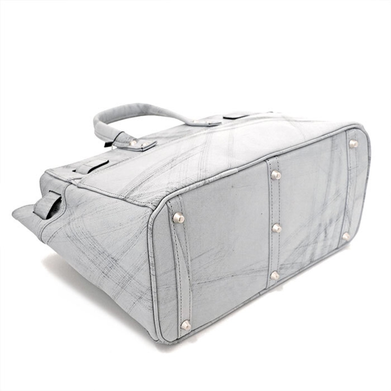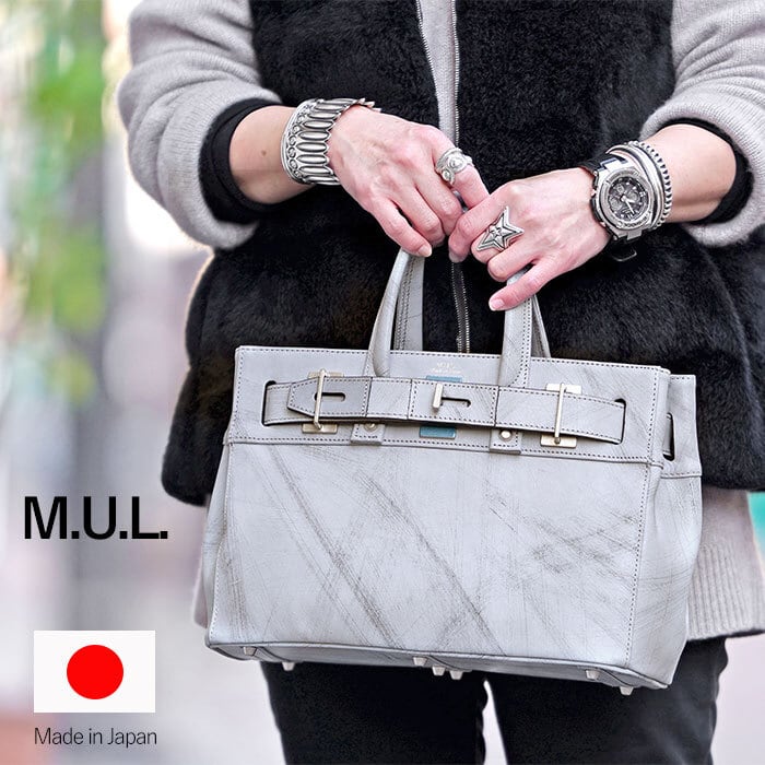 M.U.L MUL128 STUD TOTE S ダメージホワイトコーティング スクラッチ型押し